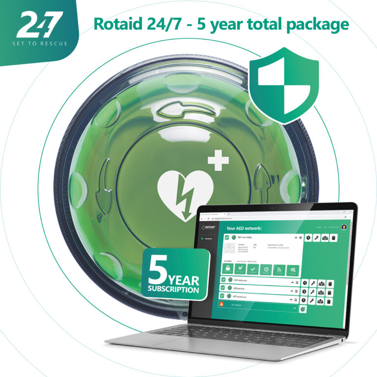 Rotaid 24/7 overvågning – din garanti for en funktionsklar hjertestarter. Altid.